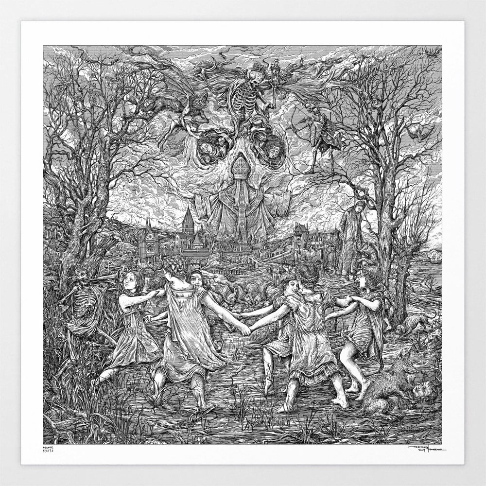 Official artprint of GHOST's Prequelle illustration for song ASHES is available as first run of 25 gigantic exquisite archival quality giclee artprints, signed and handnumbered by the artist.